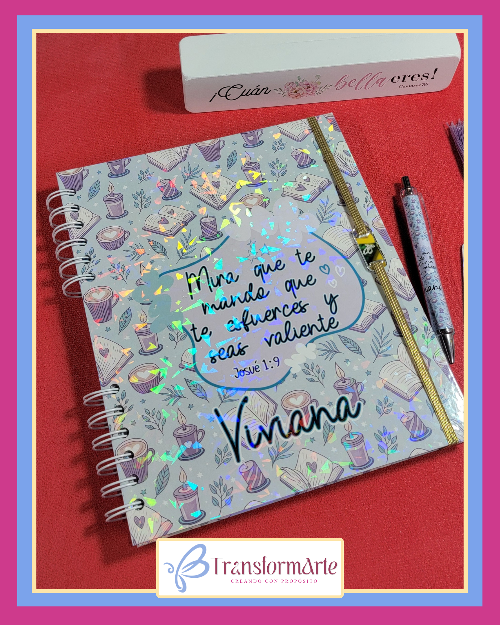 Lleva contigo palabras de aliento cada día con esta hermosa libreta de notas personalizada.